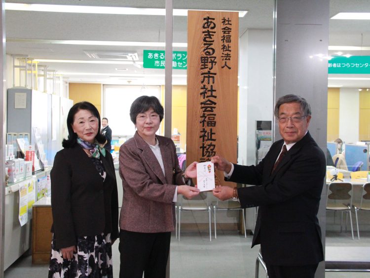 国際ソロプチミストあきる野様より、寄附金をいただきました。